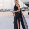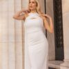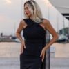 Ένα υπέροχο φόρεμα απο ελαστικό κρέπ και λεπτομέρειες απο premium Μουσελίνα που δένει στο λαιμό.