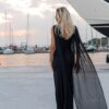 Ένα υπέροχο φόρεμα απο ελαστικό κρέπ και λεπτομέρειες απο premium Μουσελίνα που δένει στο λαιμό.