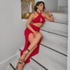 Σετ Μάξι Φούστα με Σκίσιμο και Halterneck Crop Top