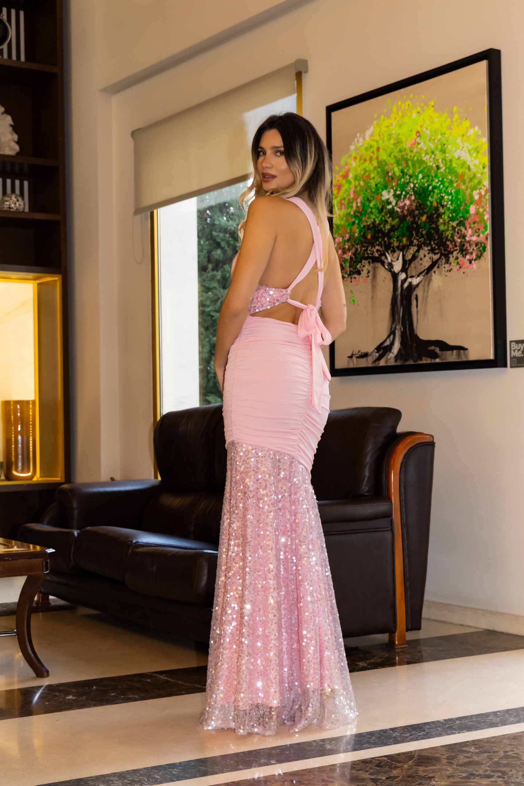 Το Alessia maxi φόρεμα της Dazzle συνδυάζει τη λάμψη της παγιέτας με την κομψότητα της γραμμής γοργόνα. Το επάνω μέρος χαρίζει διακριτική λάμψη, ενώ η φούστα α αγκαλιάζει το σώμα και ανοίγει απαλά στο τελείωμα δημιουργώντας μια θηλυκή σιλουέτα.