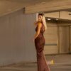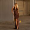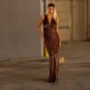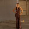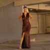 Maxi φόρεμα απο Jersey ύφασμα με ανάγλυφο glitter Lurex.