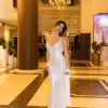 Η ανοιχτή πλάτη χαρίζει μια σύγχρονη και θηλυκή αισθητική, ενώ η minimal γραμμή το καθιστά ιδανική επιλογή για πολιτικό γάμο, pre-wedding εμφάνιση ή bachelor party.