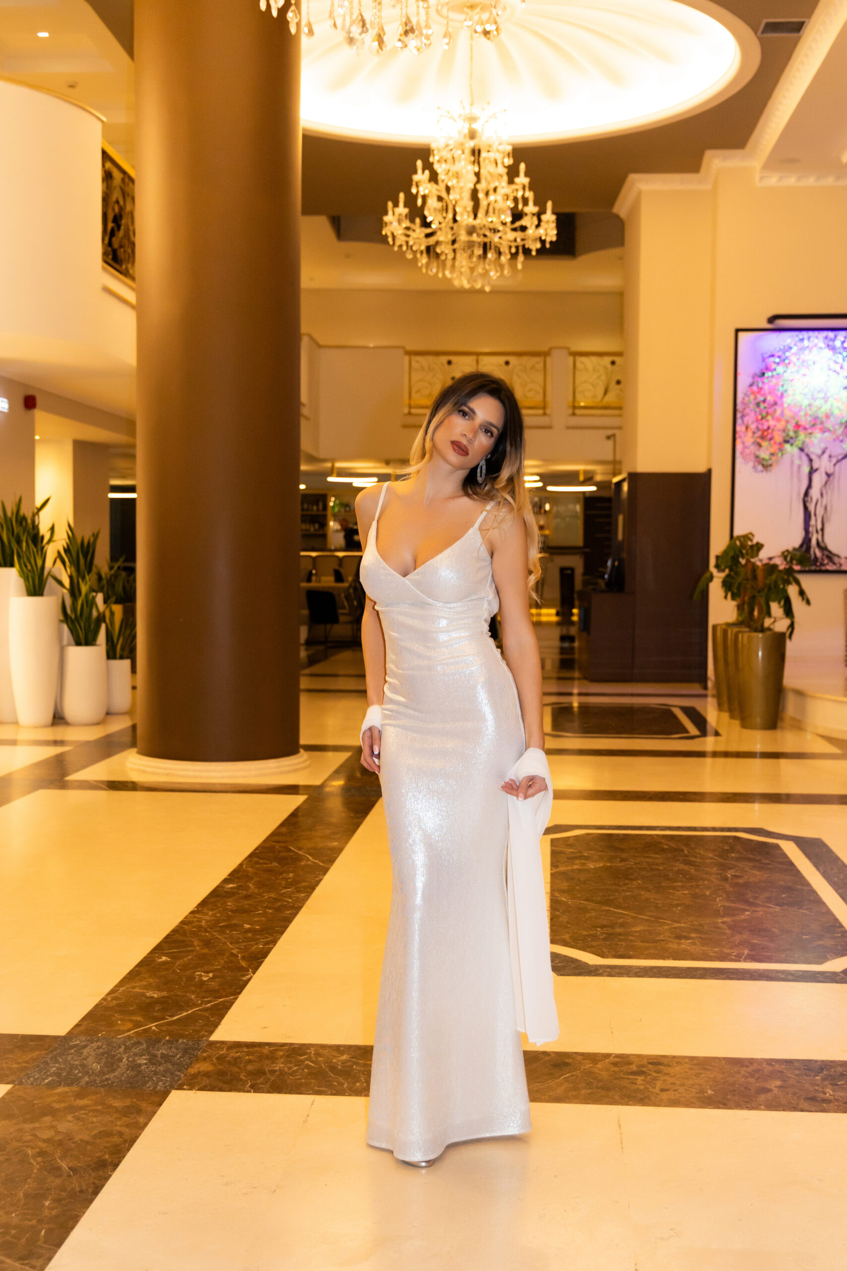 Το Ariana White Maxi Dress είναι ένα κομψό maxi φόρεμα σχεδιασμένο για ιδιαίτερες στιγμές. Κατασκευασμένο από λευκό ελαστικό ύφασμα με διακριτική μεταλλική λάμψη που αγκαλιάζει το σώμα και δημιουργεί μια elegant σιλουέτα.