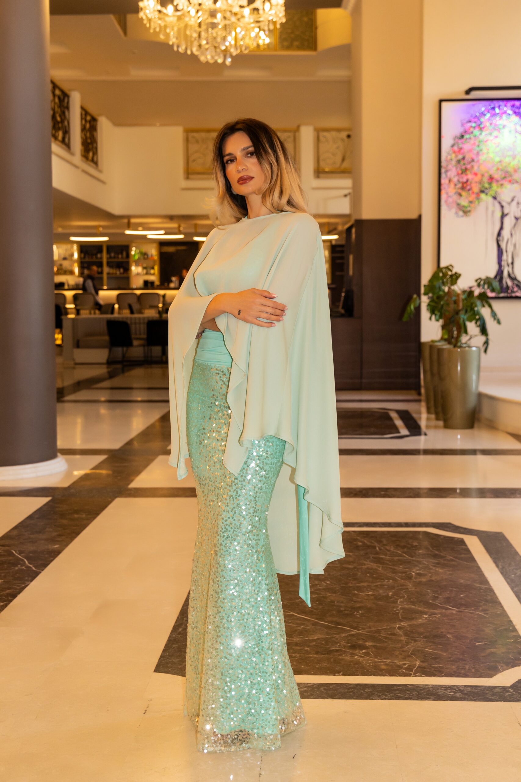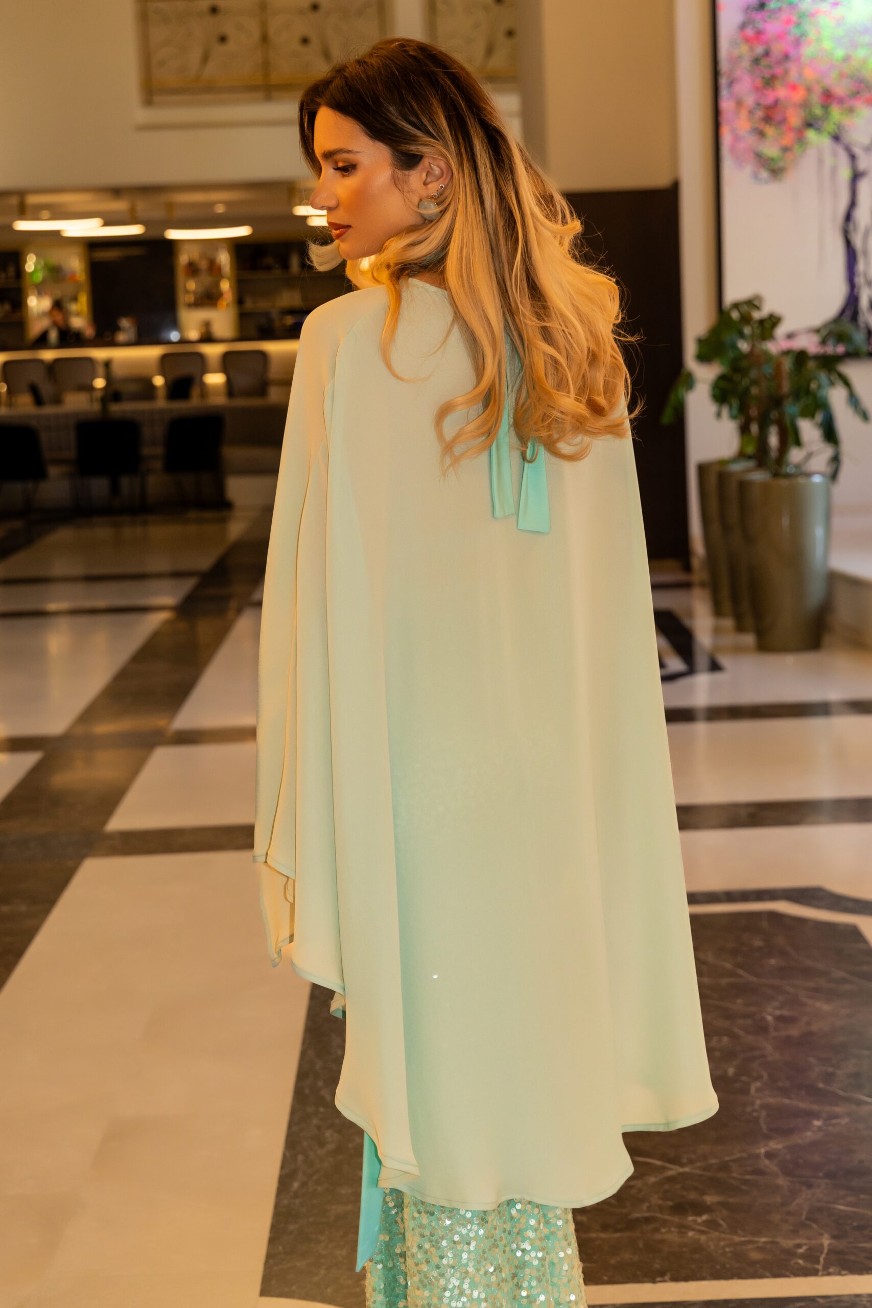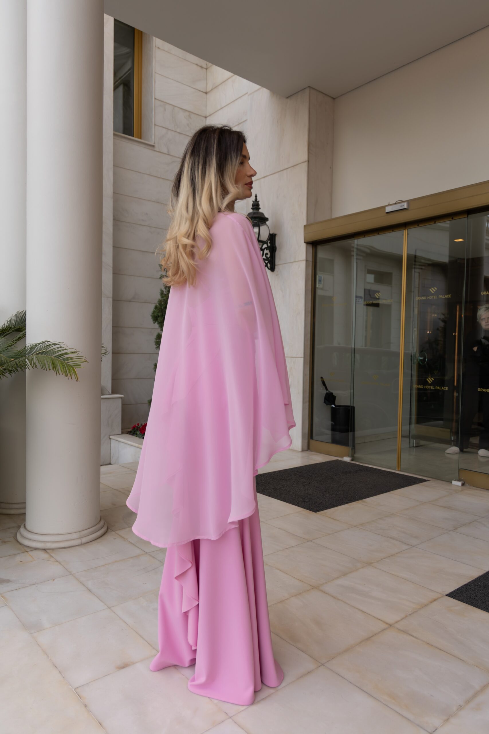 Αέρινη κάπα από μουσελίνα που προσθέτει κομψότητα και κίνηση σε κάθε εμφάνιση.