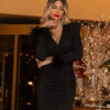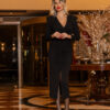 Κομψό φόρεμα για καλεσμένη σε γάμο με κρουαζέ V μπούστο που δημιουργεί καθαρή και θηλυκή γραμμή, ιδανική για επίσημες περιστάσεις.