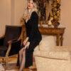 Το ύφασμα προσαρμόζεται στη σιλουέτα διατηρώντας καθαρό το σχήμα του μπούστου και της μέσης.