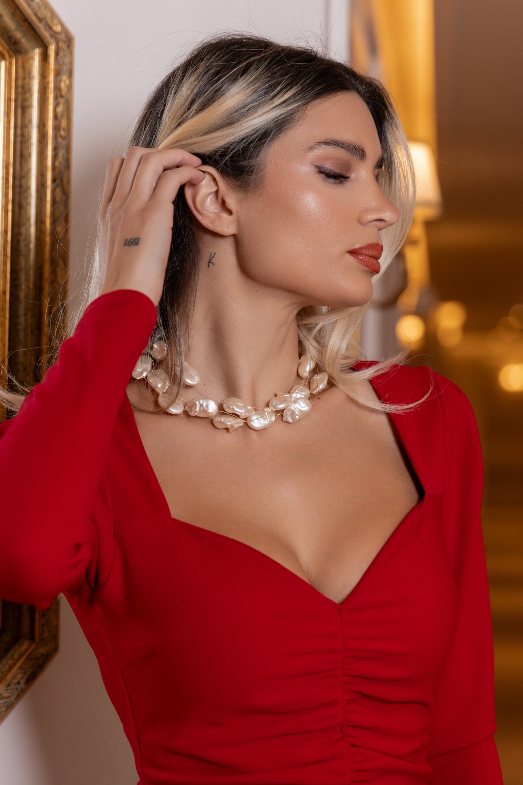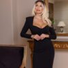 Yπέροχο mini φόρεμα απο ελαστικό κρέπ με φερμουάρ στην πλάτη και βάτα στους ώμους.