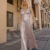 Εντυπωσιακή ολόσωμη φόρμα απο ιριδίζον premium jersey.Το υπέροχο V που κάνει στο στήθος κολακεύει κάθε γυναίκα.Στο πίσω μέρος έχει φερμουάρ.Συνδυάστε το με ψηλοτάκουνα mules και εντυπωσιακά αξεσουάρ.Ιδανική επιλογή για γάμους βαπτίσεις και διάφορα events!!