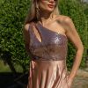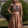 ‘Eνα υπέροχο φόρεμα με συνδυασμό υφασμάτων.Το τοπ του φορέματος είναι απο ελαστική παγιέτα και η φούστα του φορέματος απο premium σατέν.