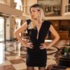 Mini φόρεμα απο premium ελαστικό jersey που αγκαλιάζει τέλεια το σώμα.Διαθέτει φερμουάρ και βάτα στους ώμους.