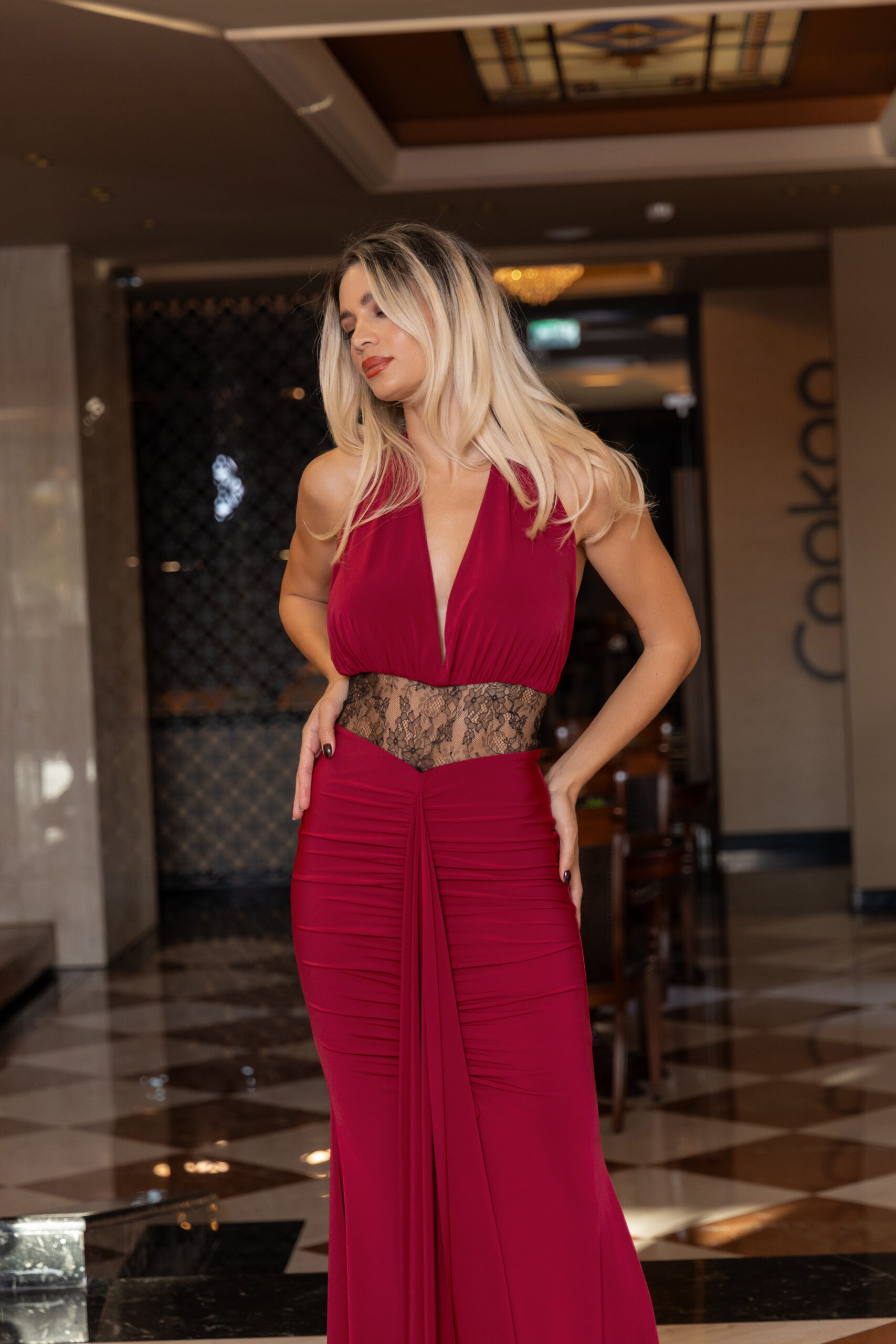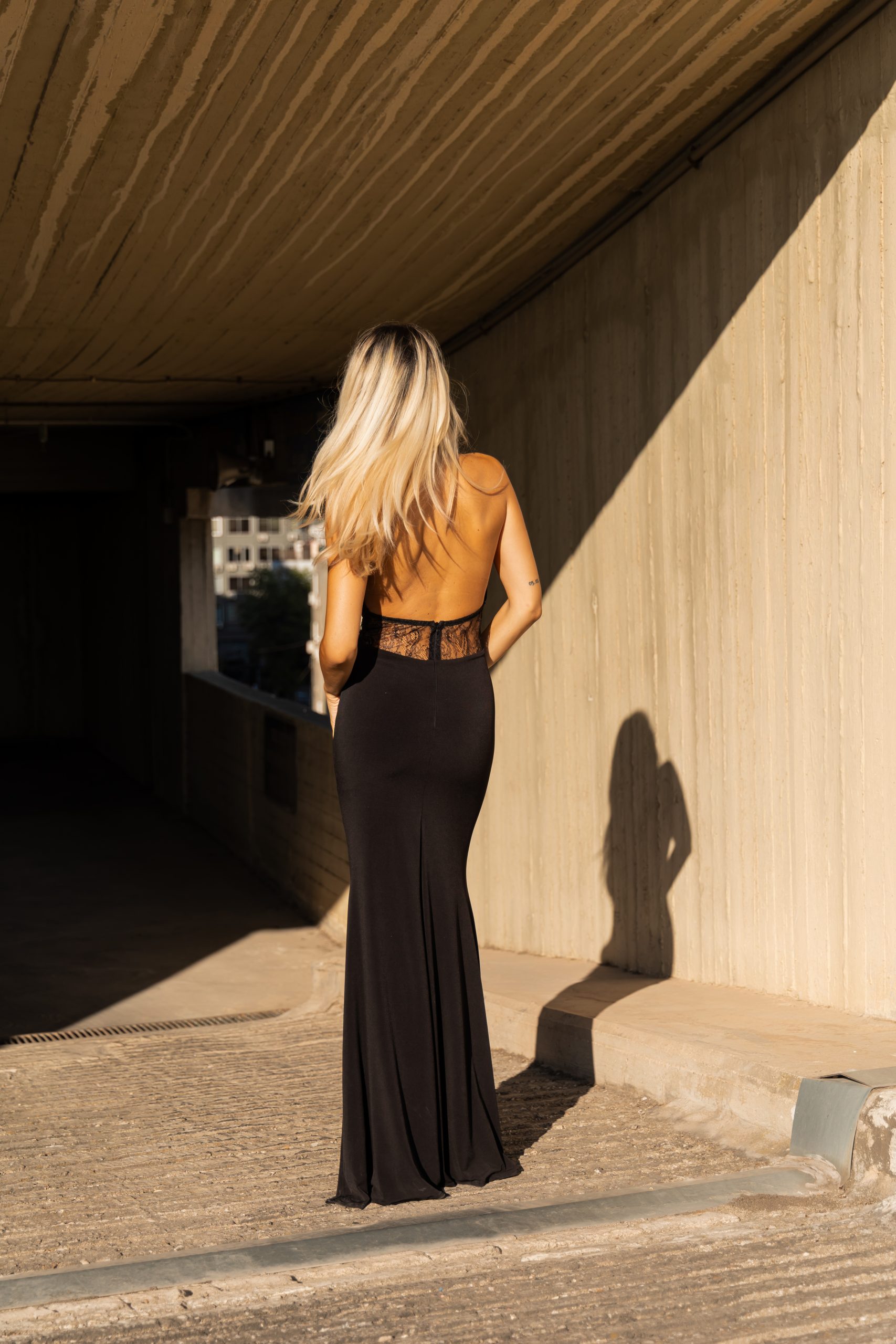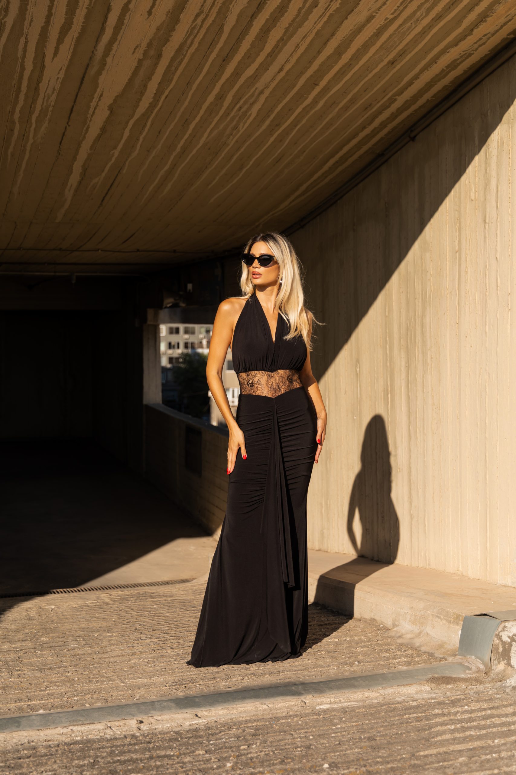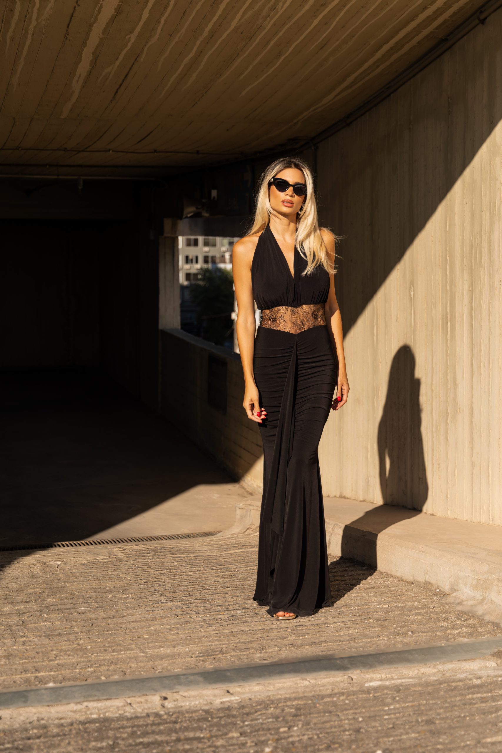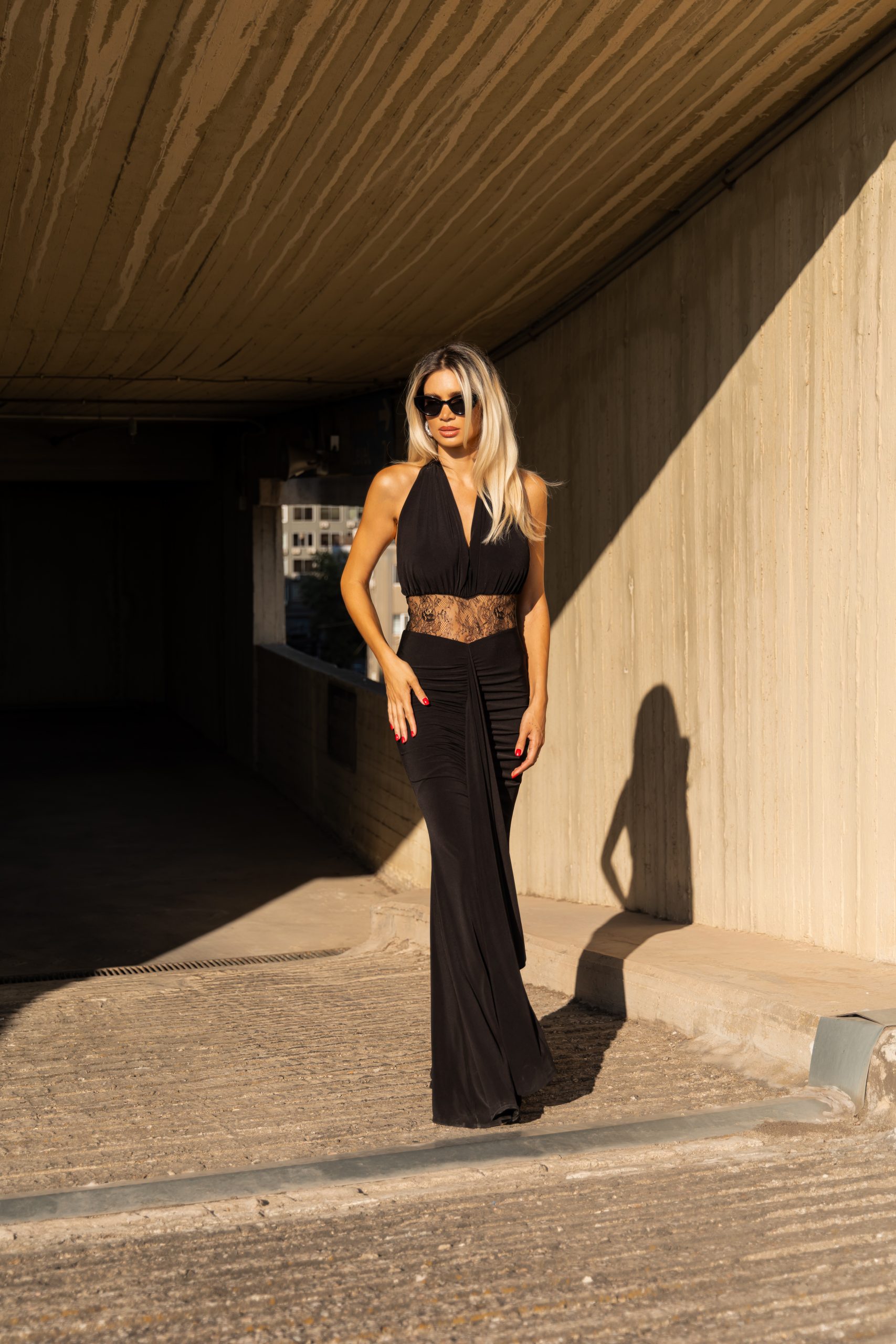 Kαταπληκτικό φόρεμα απο premium ελαστικό jersey με λεπτομέρειες δαντέλας στην μέση.