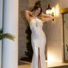 Το Seraphina White Maxi Dress είναι ένα εντυπωσιακό maxi φόρεμα σχεδιασμένο για ξεχωριστές εμφανίσεις. Κατασκευασμένο από ελαστικό ύφασμα με μεταλλική λάμψη και πλήρη φόδρα για άνεση και τέλεια εφαρμογή.